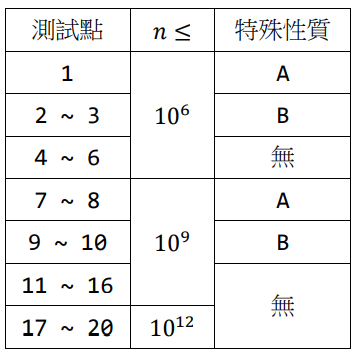 輸入的第一行包含一個正整數 T,表示測試數據組數。