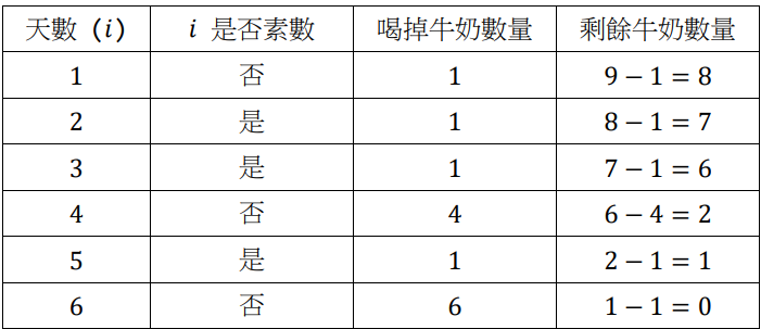 • 如果 i 不是素數,他剛好會喝掉 i 盒牛奶。