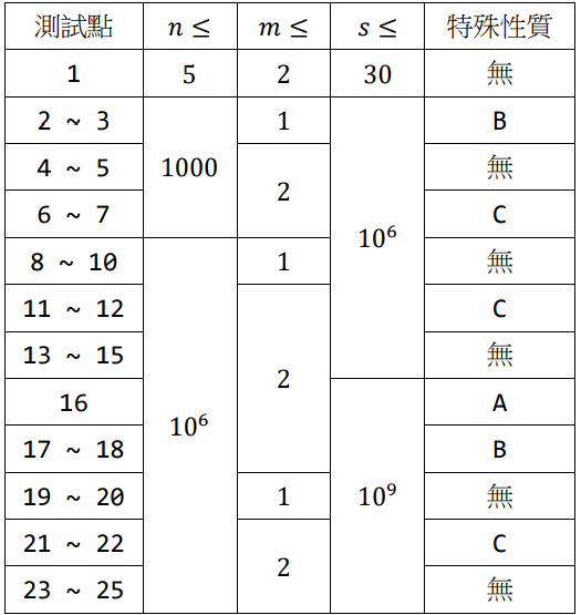 • 第一行包含三個正整數 n,m,s,以空格分隔。