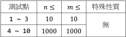 輸入的第一行包含兩個正整數 n,m,以空格分隔。